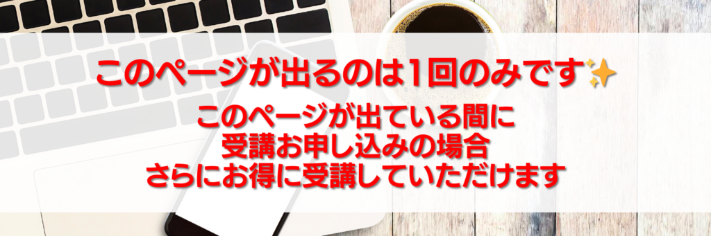 こんな圧倒的にお得な条件で学んでいただける、またとないチャンスです。ただし、1回のみのご案内となりますので、お見逃しのないよう、ご注意ください。